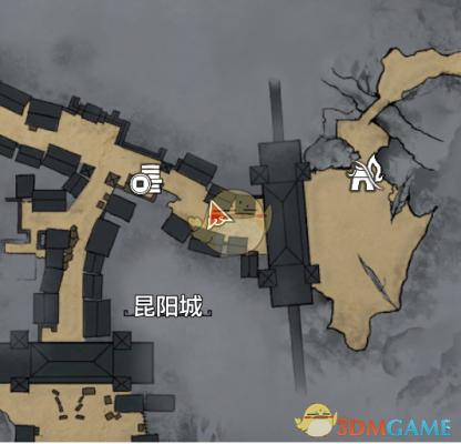 千锻钢支线就在昆阳城,就是告诉一个小孩子他爸死亡的支线,具体位置如下图