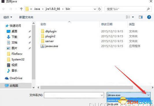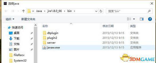 那么,现在是最重要的时刻了:找到你的JAVA路径,然后选JAVAW.EXE