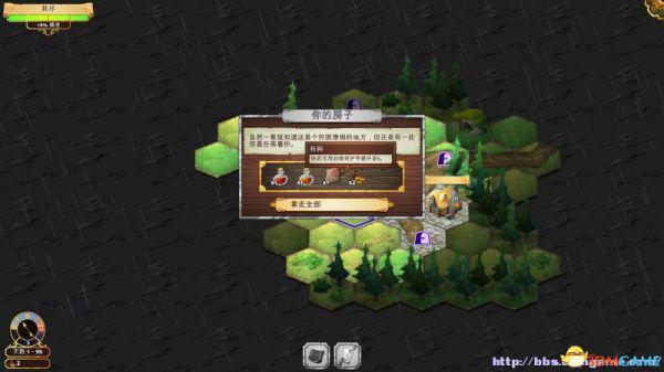 step1.在起始位置可以与小丑对话,向他获取游戏教程。然后可以去到西面英雄的家中拿到生命药剂、敏捷药剂、布料、金,这里无需探索时间。然后去到北面离家不远处的洞穴中,可以选择花费2小时或9小时进行探索,随后能够获得菇。