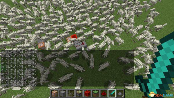 然后它就会连续不断的工作了。比如这里召唤了海量的骷髅马。想要停止的时候,直接破坏红石电路就可以了。