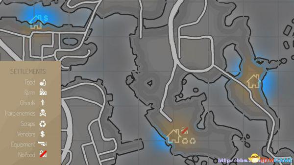 显示定居点位置---显示资源信息(Food食物 Farm农场 Ghouls食尸鬼 Scraps废料 Equipment设备 装备)