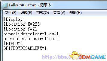 BPIPBOYDISABLEFX=1(ini文件修改,FALLOUT4CUSTOM.INI )