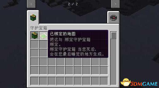 1.一个守护者宝箱,默认右键激活箱子。死亡后默认生成在死亡点,对箱子右键可以取回掉落的物品。