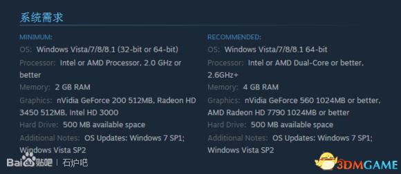 显卡: nVidia GeForce 560 1024MB 或者更高, AMD Radeon HD 7790 1024MB 或者更高