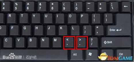 游戏有提示的...就是 键盘上的 逗号和句号 , 和 . 也就是 < 和 > 这两个符号.