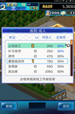 职业可以通过任职人数和时间来进行升级,也可以直接使用升级道具升级,职业升级会带来相应的工资提升。