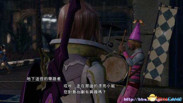 这时候就要想办法混入表演团队,随后就回去表演广场入口右侧的楼梯上与戏剧家蕯扎克对话,雷光提议自己参演,蕯扎克非常欣赏雷光,所以决定让她做女主角——解放者。