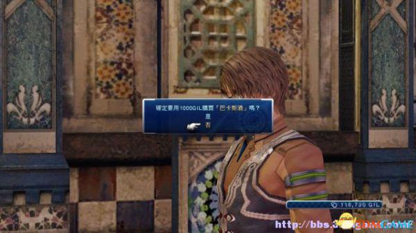 step2.前往太守之宴,与主人家对话,花费1000GIL购买一瓶巴卡斯酒,然后交给这名醉酒弟子。