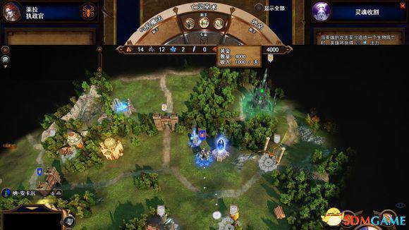 顺路走税收官资源点,500大洋,旁边还有个柱子,1000经验,除了出门木矿那个宝箱,所有宝箱全部要钱,一般来讲,有4000-5000的钱,建设英雄殿堂,召个会经济的英雄,设置总督,种族不论,亡灵最好。