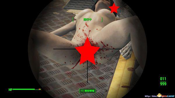 对着她的双腿间,退后6步左右,重点来了——捣出狙击枪,带放大镜的,右键瞄准她的小腹下面——一定要瞄准,开三枪。