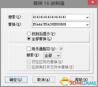 打开后左上先打开你的存档,我是WIN8.1 ALIENWARE,我的存档就在我的文档,MY GAMES,FALLOUT4裡面的SAVES,如果你不知道哪一个是最新的存档的话,看一看最后更新日期就可以区分了(关于存档在哪可以自行百度)接着按一下 ctrl + alt + h,出现搜索与替换界面,在顶端一栏粘贴刚刚复製的代码,并把所有的 x去掉!记住,所有的!!!!!!去掉后应该就是414141414141414141这么九个41,别把源代码带进去!!!!记住不能有x!!!完了后别急着关,再打开: