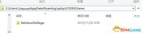 而CODEX分享版的存档位置则是在C:Users3dmgameAppDataRoaminguplayCODEXSavesRainbowSixSiege文件夹下,其中3dmgame为计算机用户名。