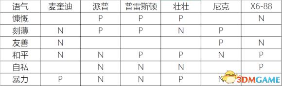 但是作者这个分类稍微有点迷,刻薄(mean)很好理解就是指讽刺选项,自私(selfish)指的基本就是办事先要钱这类的,然而这个友善(nice)和和平(peaceful)到底有多大区别我也不知道。