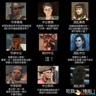 辐射初代本来也是想照搬当时大红的dnd系统的,然而因为版权没弄来外加设计无聊麻烦又没新意,他们就自己搞了个special系统,效果还确实不错。至于九宫格的设定,dnd是沿用了中世纪传奇故事那种机械的善恶论,跟废土的后启示录风格完全不适应,所以那个图就是好玩而已,不要较真。