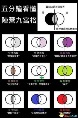 九阵营是dnd角色扮演用的xxxxx(一个很长而且逼格很高的名字)系统的很小一部分,用来简单地给玩家和npc划阵营,但因为走出dnd后常以九宫格的形式被用于各种花式吐槽反而更加广为人知