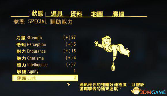 这是初加点 力量有娃娃就满了 力量终极天堂路推荐学到2级省电在学 因为太费电 初级学没有电.加上力量娃娃融合电厂抢手初期太恶心 感知?有用?..耐力要加下面的点就能点那么多了 魅力加上SP书点2做凯博士他爹任务拿娃娃和血清学孤独 智力拿娃娃学省电 运气拿娃娃学15%伤害