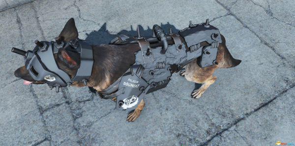 狗肉能穿的装甲都好丑有木有,现在终于来了一款能让狗肉也大展风采的装甲材质包了——重装狗装甲和狗头盔,钢铁兄弟会涂装。