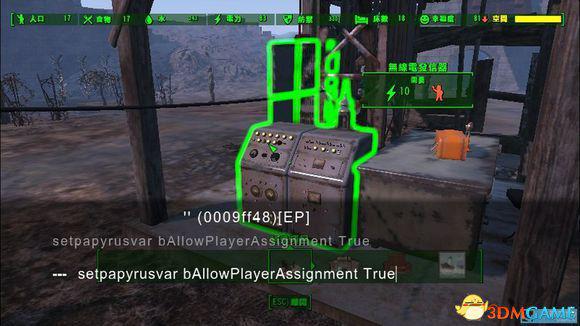 3,重点来了,如果第一步和第二步都无效。如图,工房模式下,选定电台,然后开控制台,点击电台,然后输入图中代码,注意大小写。输入代码后,原本不能指派其他居民的电台变得可以指派了,随便指派一名居民后,原本的播报员义勇军就会回到椅子上。