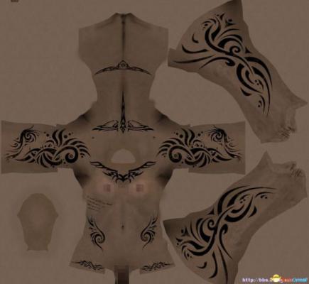 模组介绍:本纹身基于Glorious Female Nude Mod by BlackFireBR 的果体补丁制作, 如想要单纯的果体无纹身请去这里下载。