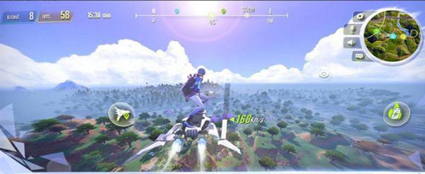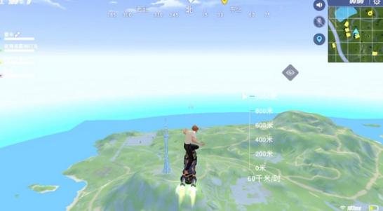 5、当距离地面100米的时候角色就会自动跳下滑板落地,但是我们落在建筑物上的时候就会提前快速降落,所以我们尽量落在有窗户的房顶之类的地方。