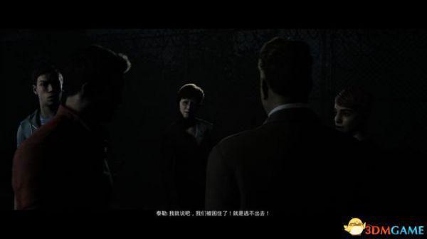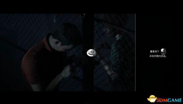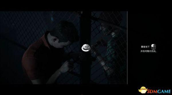 到达前面的铁栅门处和另外两名同伴会合,开门时出现QTE,连按鼠标左键撬门,五人会和。