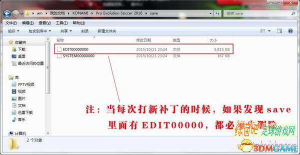 2、删除你原来的存档EDIT0000000文件,路径:我的文档KONAMIPro EvolutionSoccer 2016save