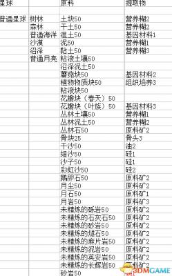 基本踏遍所有种类的星球,总结了将近200种物质(据说一共有760种),是时候填坑了,大部分石质建材提取物都是原料矿,大部分土质建材提取物都是营养糊,大部分植物物质提取物都是组织培养,大部分动物物质提取物都是基因材料,以上四种提取物统称大路货。