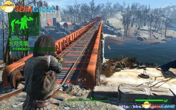 由地图传送到可伟佳装配厂,再徒步往南走到奥伯兰车站。在穿过格雷花园,途经一座铁轨桥的时候会收到军事频道AF95,自动接取任务“火力支援”。