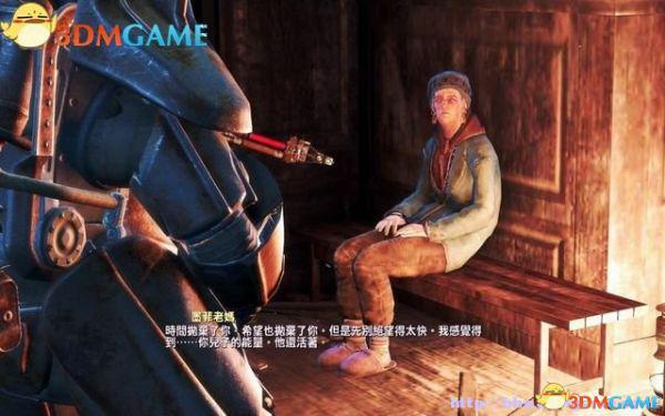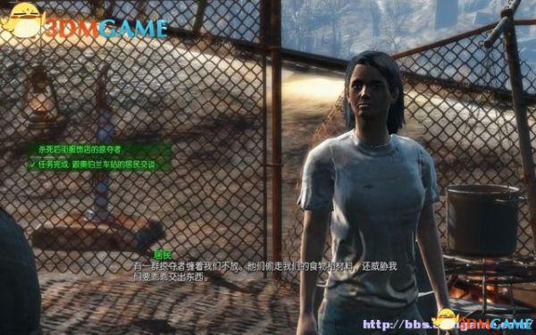 等普雷斯敦护送平民抵达庇护山丘,过去找他对话,他觉得这里符合他们定居的条件,并嘱咐主角别轻视墨菲老妈的天赋。