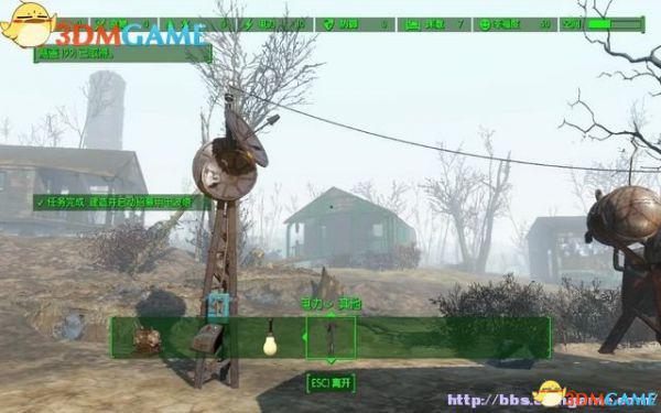 再选择地上的发电机,按空格选择“装上线路”,将电线连接到电波塔上,按空格确定。