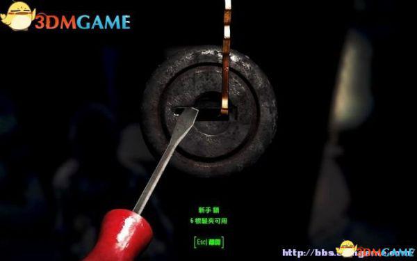 回到一层的后厅,如果按笔者提示收集的话,此时身上已有不少的发夹了,用它来打开安全门的锁。开锁方法和一样,而发夹相当于开锁器。