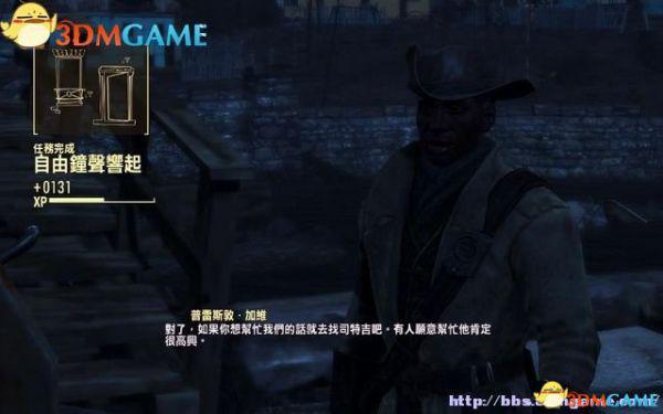 普雷斯敦请主角帮忙,前往十松庄帮助那里的居民。完成任务“自由钟声响起”,解锁任务“下一步”。