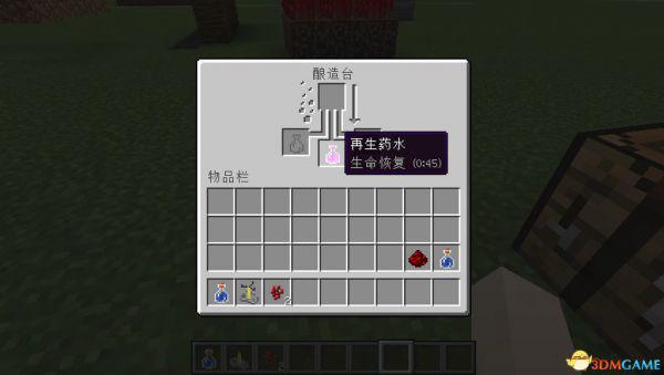 4、然后我们就可以食用恶魂之泪和粗制的药水合成出再生药水了。不过这种药水是缓慢恢复生命值的。并不是瞬间恢复。