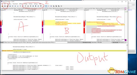 1. 在output那按一下游标,在之上(先检查位置是否对,沿用我的例子,isInitialized = true; 这行代码应该在游标之上,而//modPersistentAppearances--应该在游标之下,只需要比较ABC的脚本就能知道)