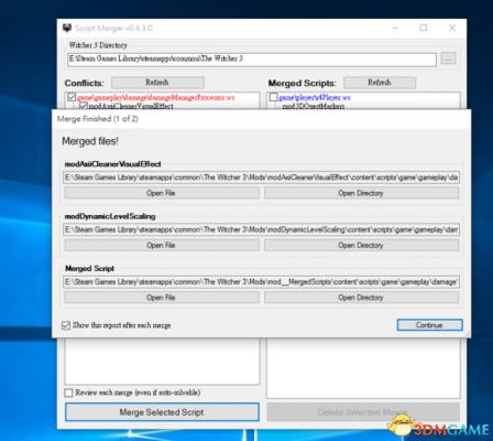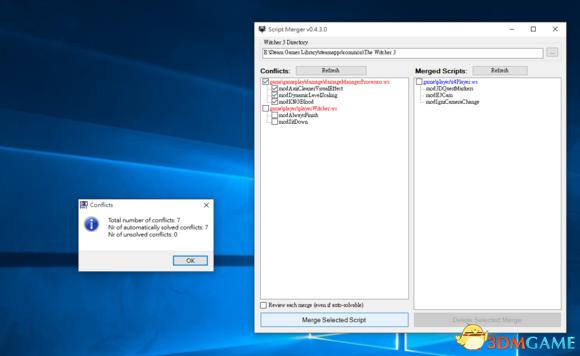 如果顺利的话,就会显示所以冲突问题都解决了,未解决的冲突问题(Nr of unsolved conflicts)也会显示为0,最后那组mod会出现在Merged Scripts中,如图