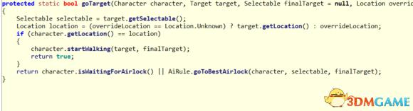 我们真正输入的参数其实是当前处理的这个强盗和这个强盗将要选定目标的被害人,而这个函数的作用就是使强盗走向被害人,而其中就包含了goToBestAirlock(走向选定的最佳气闸)。至于这个函数是如何定义的就不再解释,太过复杂,也考虑到了其它正在执行的任务对流量造成的影响。