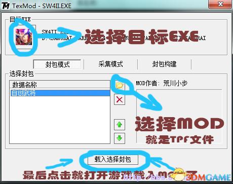 使用方法:因为之前有人不知道怎么使用,所以附上了使用方法,Texmod工具加载Tpf。