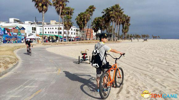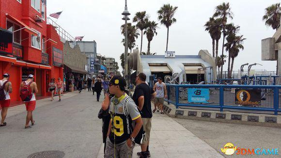 在巴士之旅结束以后,我开车来到了威尼斯海滩【话说真尼玛远,比游戏里远多了,我大GTA5的地图还是缩得比较厉害的,当然就算缩了很 多街区,也算是目前还原度最高的沙盒游戏,没有之一】
