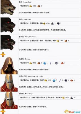 有些兵种建筑的图标和游戏的不一致,亡灵的兵种图片游戏里用的是旧的,这里为了不重复图片,用的是实际的兵种头像图标。