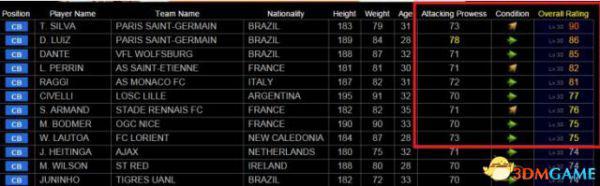 以CB来说,好的CB都有进攻能力,所以就选attacking prowness+CB 然后符合条件的一共17个球员,席尔哇,路易斯,Dante赫然在列,然后只要再+个法甲联赛,就剩下席尔哇,路易斯+另外2-3个人,这样就40%概率抽到席尔哇,路易斯中的一个,三星球探就是30%X 40%=12%出86和90的席尔哇,路易斯