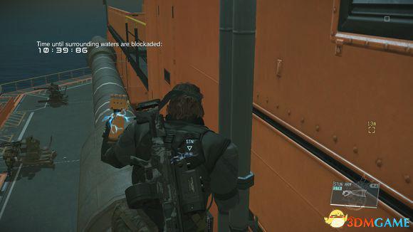 来到2号甲板了,这小心对面狙击手,还是匍匐前进。注意画面中的吊车这里有狙击手,就要从他们底下慢慢爬过去: