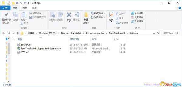4. 将步骤3压缩包中 FaceTrackNoIR 文件夹下的 GTA.ini 复制到 FaceTrackNoIR 安装文件夹下的 setting 文件夹内,如图是我的文件路径;