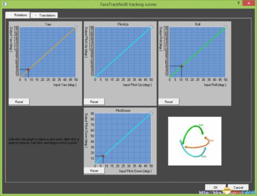 在FaceTrackNoIR审查设置的坐标轴,与在 facetrack.ini 里设置的效果相同。