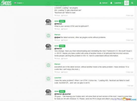 3. 遇到这样的问题,很无奈于是回到 GTA5-Mods.com 与作者进行了沟通,发现出现同样问题的不仅仅是我一个,还有一个悲剧的哥们 Wenon 也遇到了类似的问题,于是有了我跟作者的如下交流;