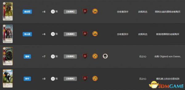 巫师3狂猎 石之心全部新增昆特牌 昆特牌全收集攻略