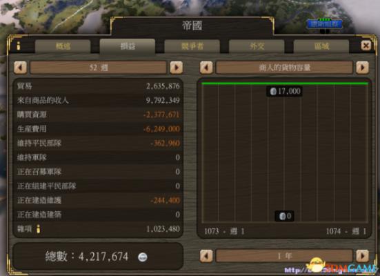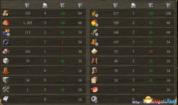 这里特别说明下第三点,城市里的货物会被居民、部队或者商人消耗掉,所赚取的钱是当前价格减去货物你的生产成本(即当前贸易价格减去生产量标签里面的成本价),但是,不是你的城市生产的货物是不会有这个收入的,当货物超过2个绿桶的时候会亏损。