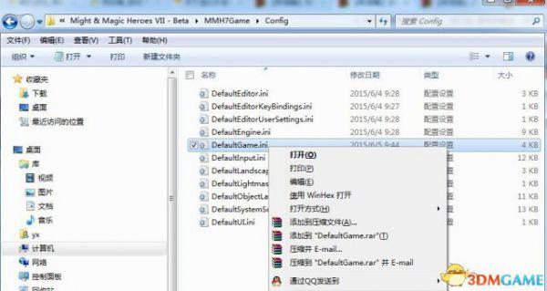 步骤1:找到游戏目录下的MMH7Game文件夹,打开里面的Config文件夹,右键编辑DefaultGame.ini文件