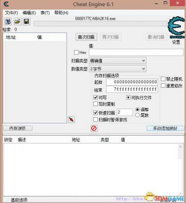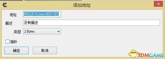 输入"NBA2K16。exe+86611BC"注意默认的是4字节的,添加时候选择2bytes,一定要注意是不是2字节的