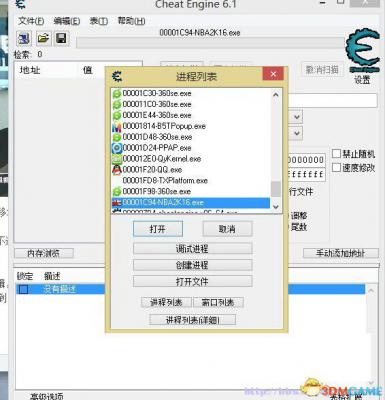 然后选择2K16进程打开,然后点击右下方的手动添加地址