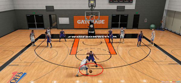 在AI没有失去重心的时候,你面向这个区域按下RT加速运球,会触发AI的瞬移吸人大法,俗称撞墙(这个问题5年前就有,一直到今天都没变过,到2k16你们才开始吐槽这不真实是不是有点晚了?)